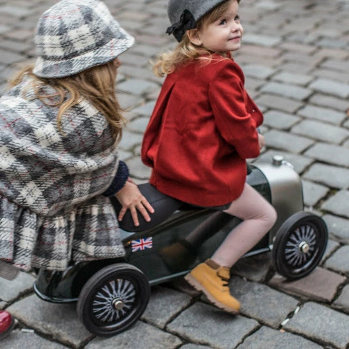 This Ride-on is inspired by the famous Bentley Blower Heritage that won the Le Mans 24 Hours in 1927. It was created in collaboration with Bentley Motors. Made entirely of metal, it is very robust and will accompany your children in all their adventures. Fall for its deep green color, an exact replica of the 1920s vehicle color and its grille topped with the Bentley logo. A reference to the British origin of the Bentley, its flag is found on both sides of the car.