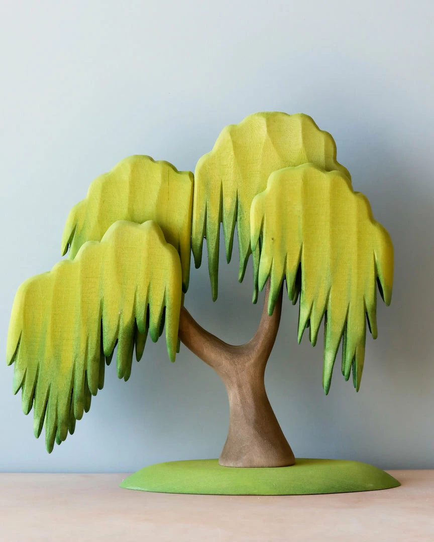 Handmade from linden wood and painted with non-toxic paint, this large tree is connected with wooden pegs and can be disassembled and reassembled easily.