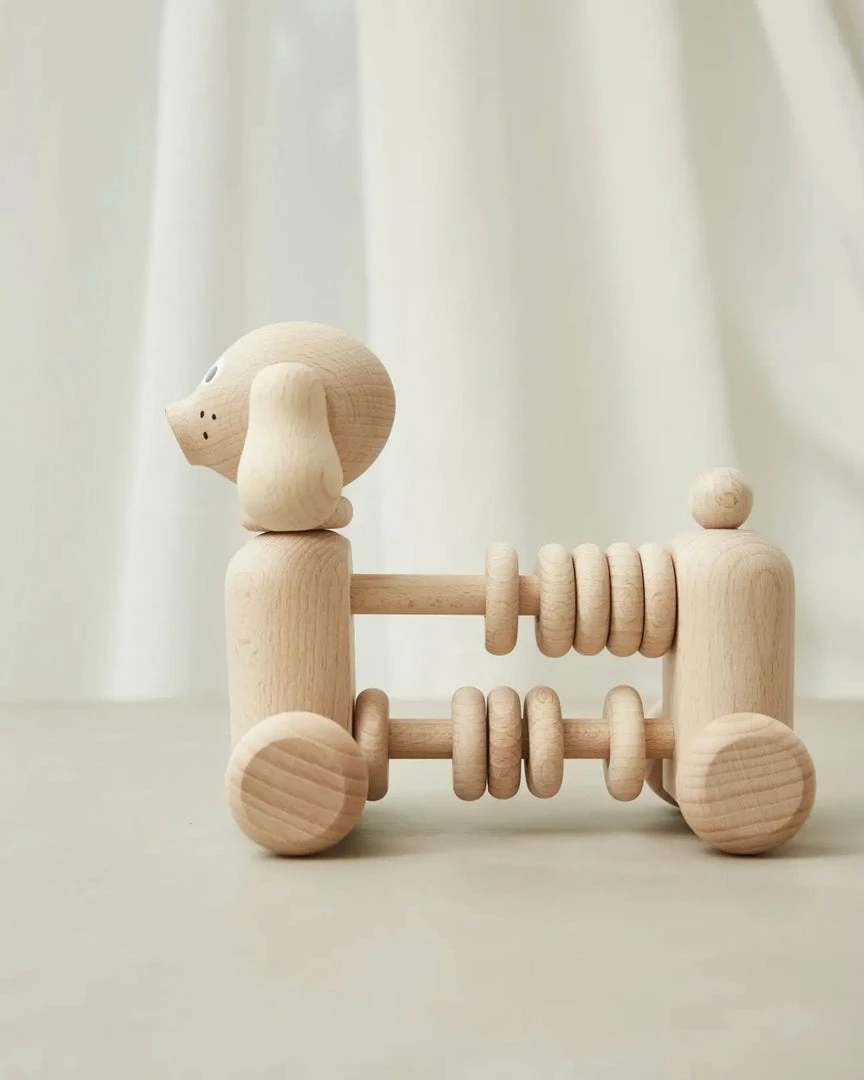 This wooden dog counter is beautifully handcrafted from solid wood without any paint or varnish. Each piece is carefully sanded for a smooth touch and finish.