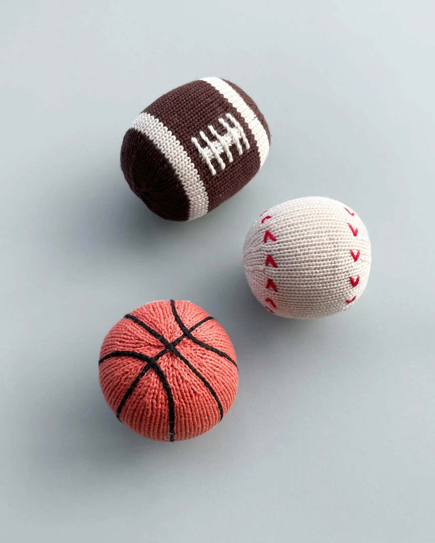 Your little one is sure to love these baby rattles’ bold colors and attention grabbing sounds. Each one is hand-knit in Peru by local artisans, with great attention to detail.Â