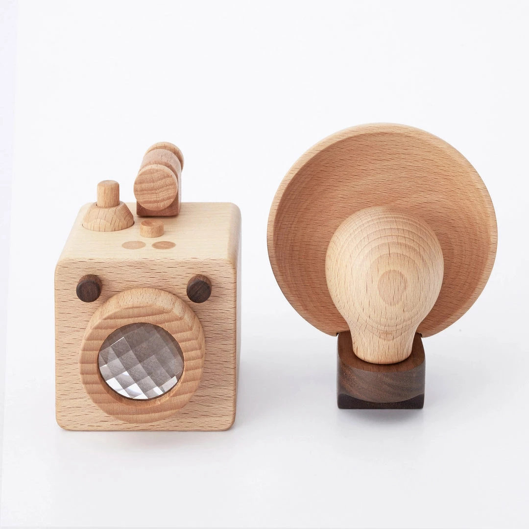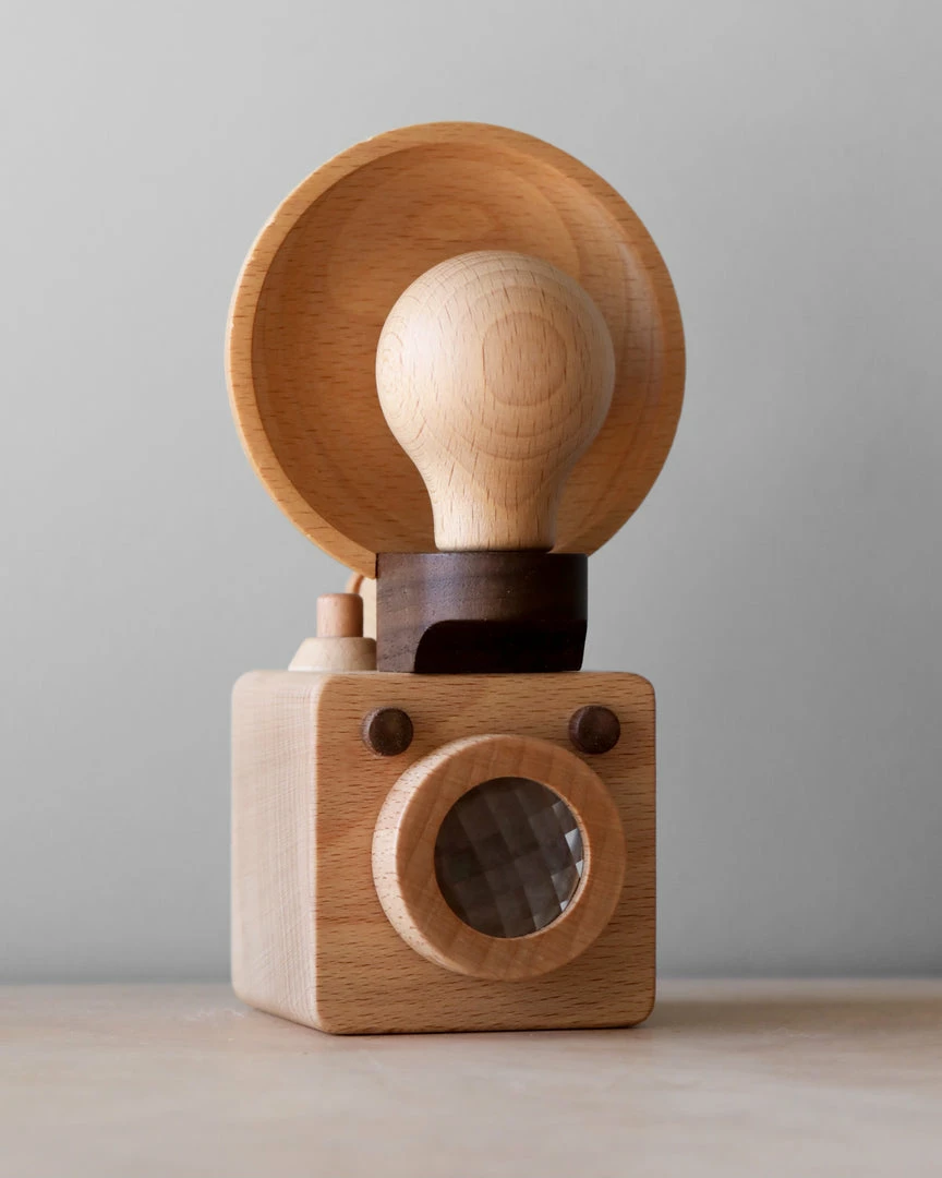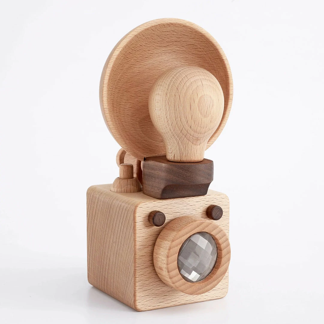 This wooden camera is expertly crafted with beechwood and includes a removable wood light bulb and flash reflector – a true keep-sake piece in your family