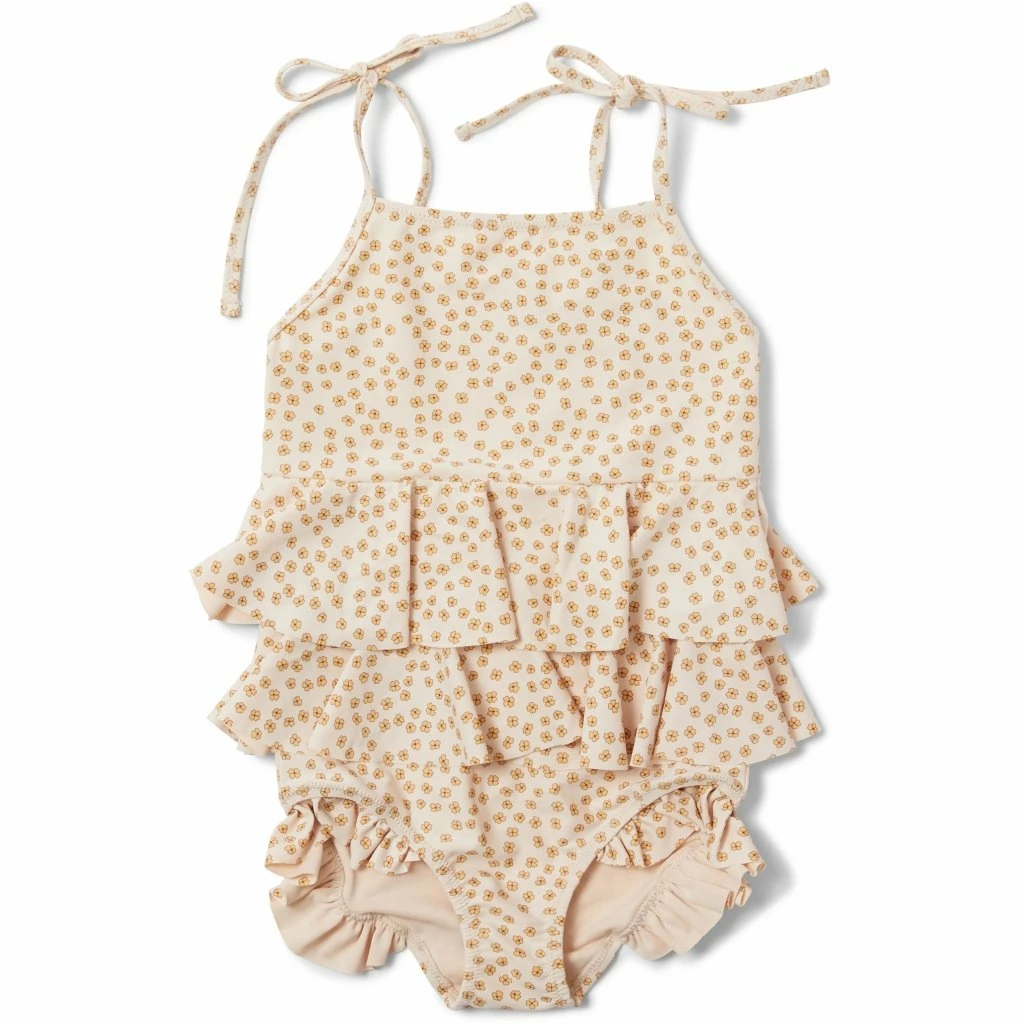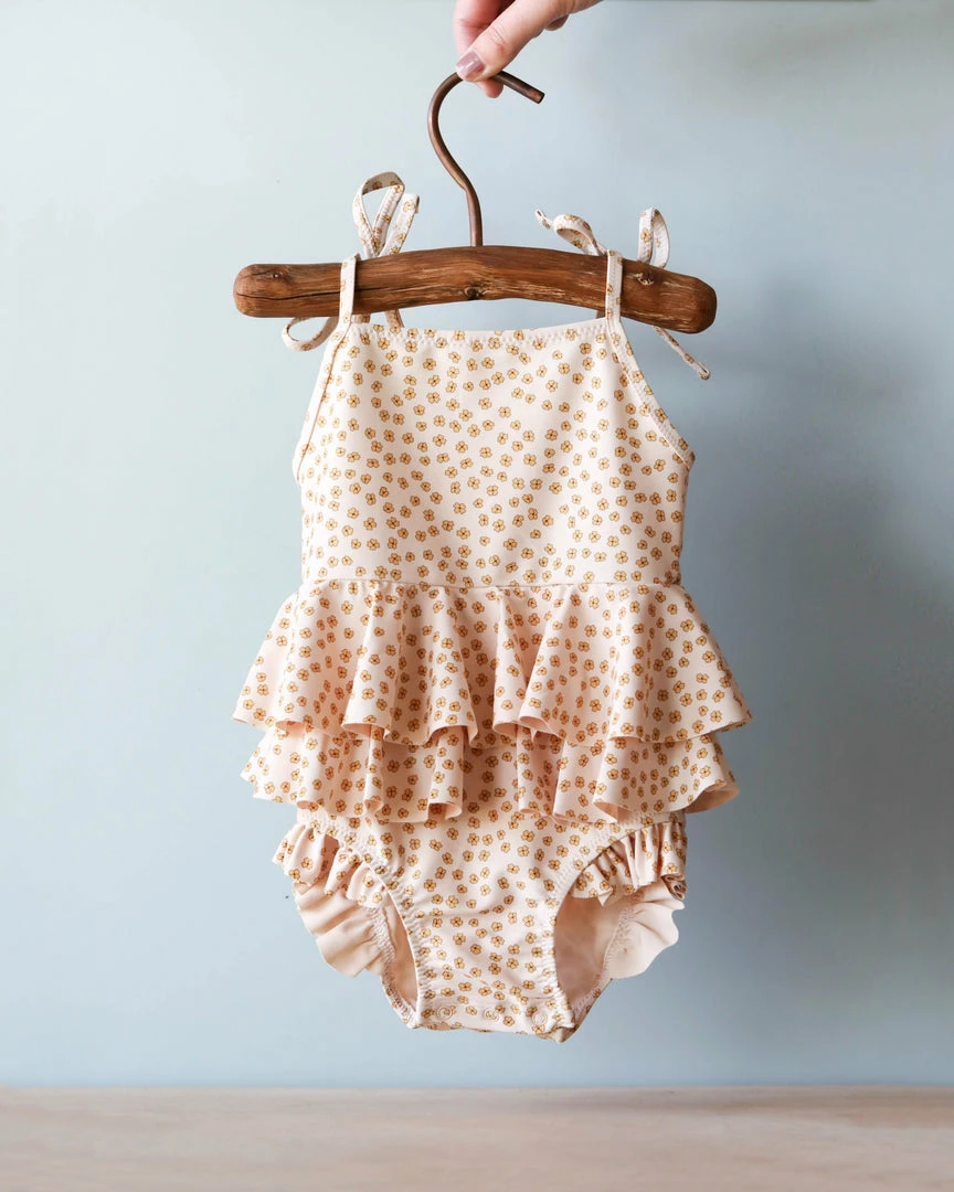 A pretty little swimsuit with frills and spaghetti straps