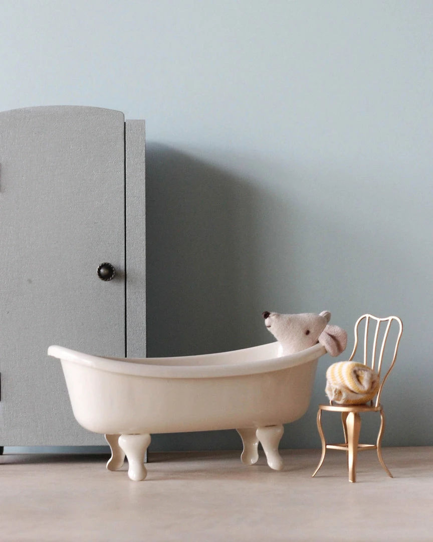 All your beloved Maileg friends will need a bath once a while. The vintage bathtub fits perfectly in the Maileg Dollhouse & Bathroom.