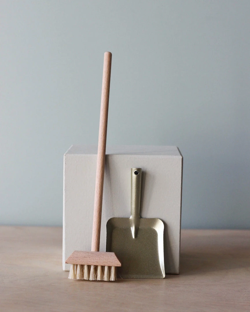 With this Miniature broom set you are ready to clean up. The dust pan comes in a beautiful warm silver color together with the wooden broom.