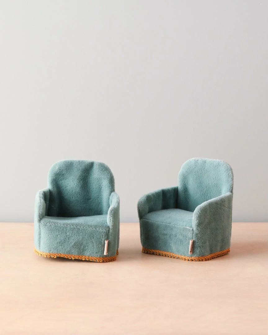 These chairs are the perfect place for your small Maileg friends to take a rest. This pack-of-two fits beautifully into the mouse castle. The chairs are delivered flat packed, very easy to fold and assemble.