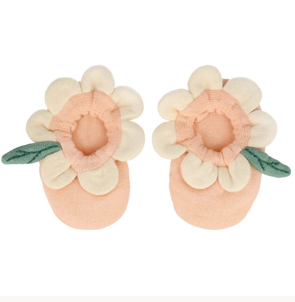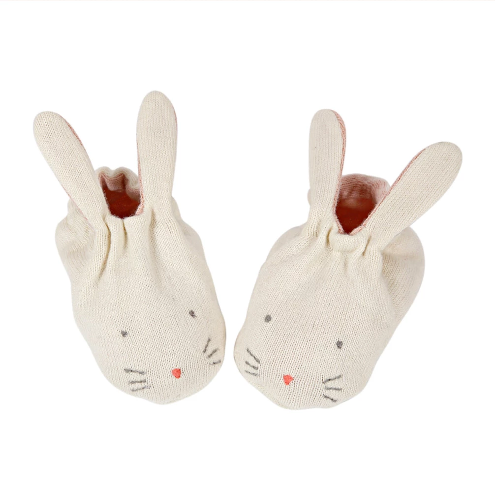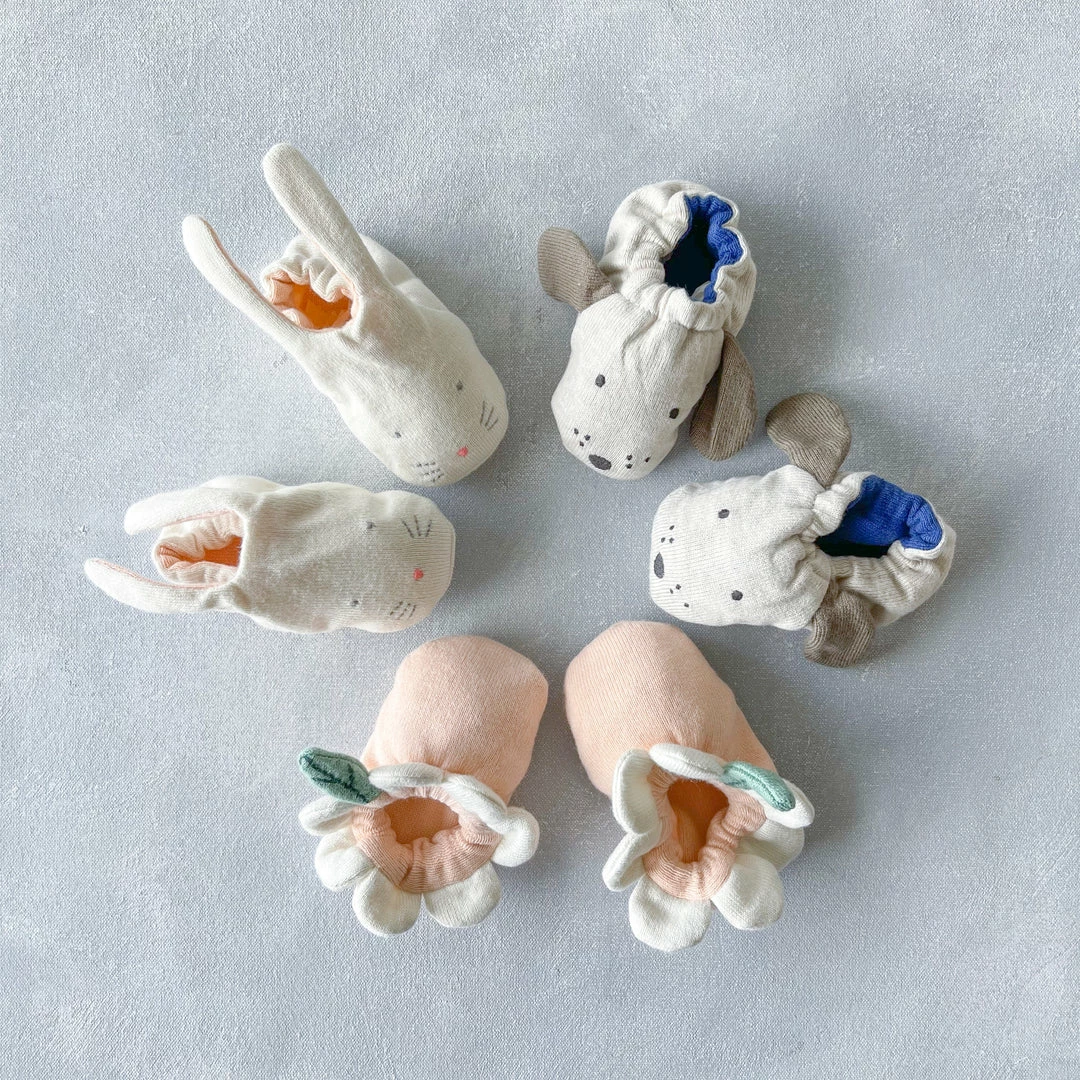 These adorable booties are carefully crafted from knitted organic cotton with a soft elastic band. They have delightful embroidered features. Presented in a beautiful drawstring bag. The perfect gift for a new arrival.
