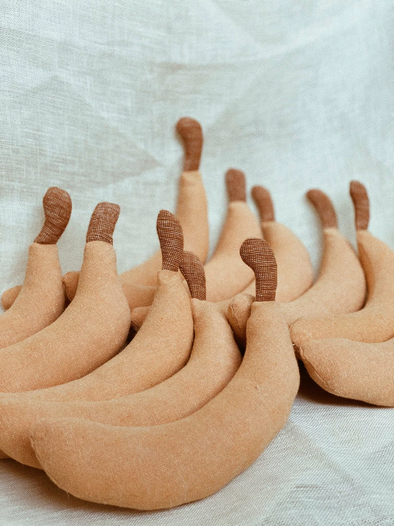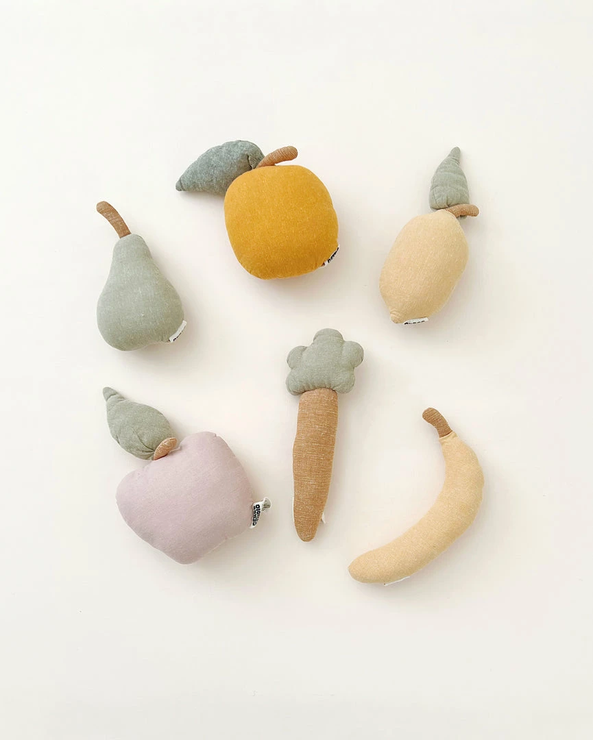 In beautiful rustic colors, the fruit rattles brings a favorite snack to life with a gentle jingle.