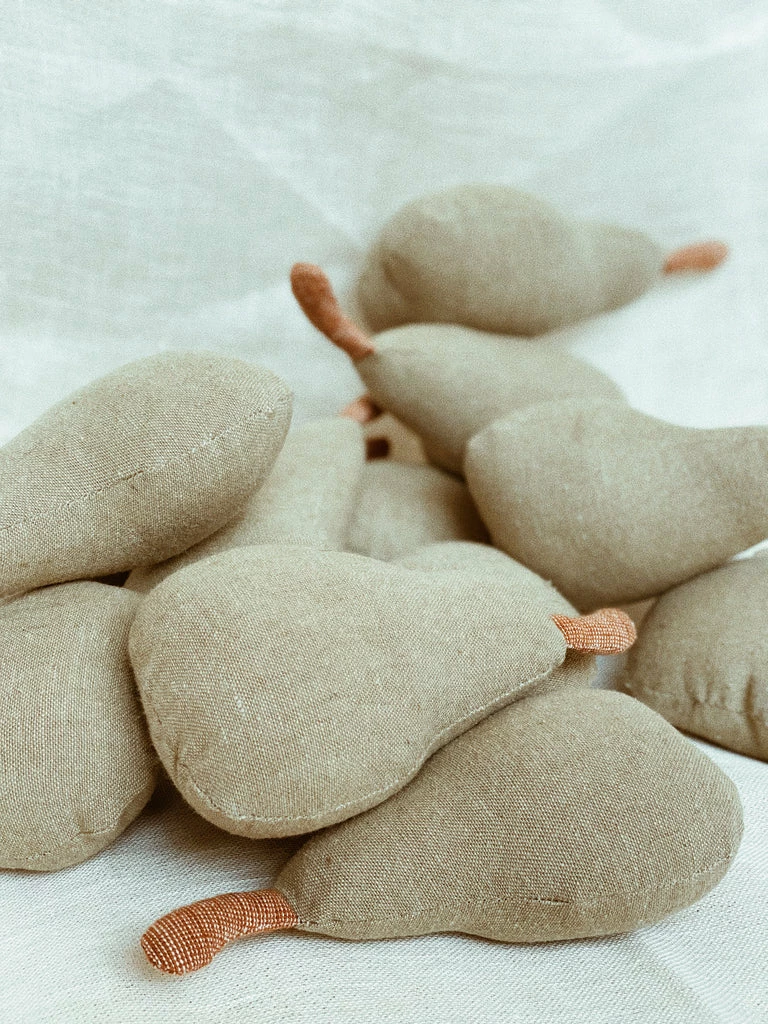 Using the finest linens and original patterns, each and every rattle is handmade by Ceres Studio in Los Angeles. It’s a labor intensive process that yields heirloom-quality pieces that can be passed down from sibling to sibling.