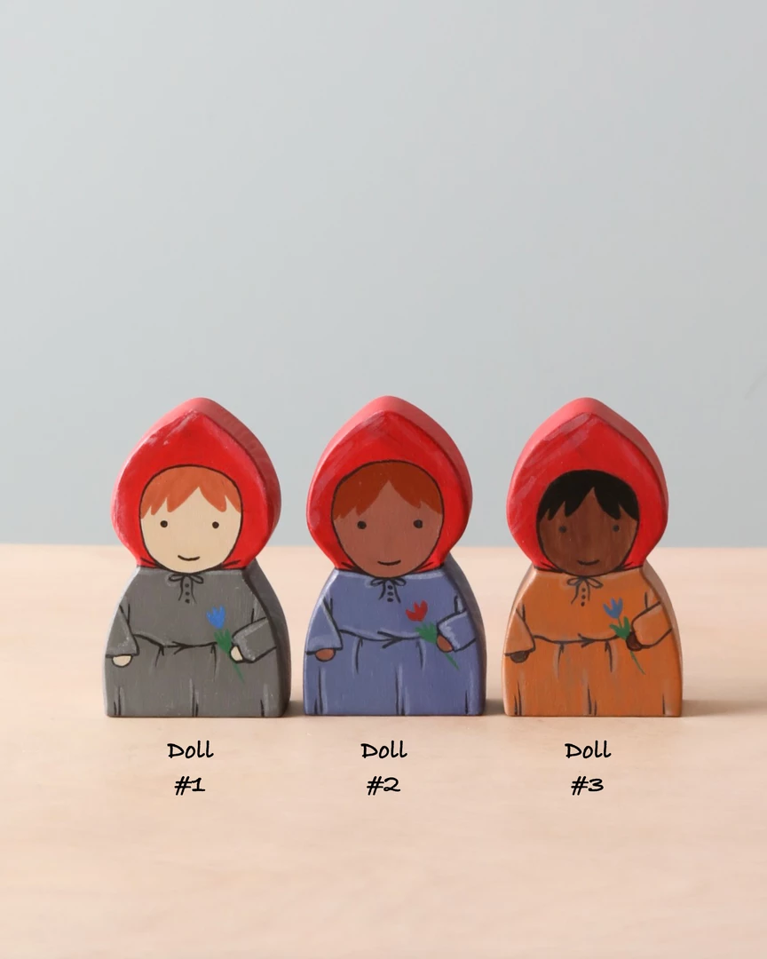 Let their imagination go wild with this handmade wooden mushroom house. The door is removable and behind it is a little wooden doll. Each piece is hand painted with great attention to detail.