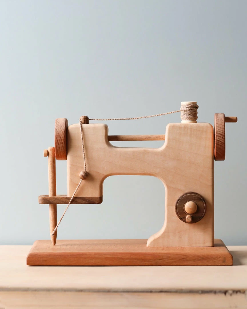 This handmade wooden sewing machine is a great toy for little seamstress enthusiasts. Turn the the handle ion the side and watch the needle go up and down!