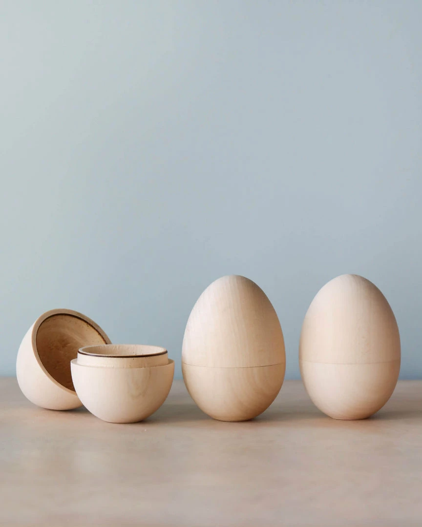 These Easter eggs are the perfect alternative to the traditional plastic eggs. Because there is no coating on the wood, they’re great for a DIY painting project.
