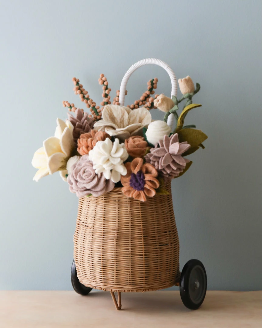 The Luggy Basket will go with your child everywhere from the beach to the playground or for helping you with the weekly food shop. But it also makes a great room decoration with our felt flowers.