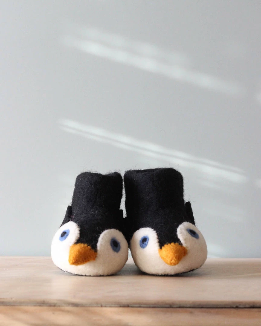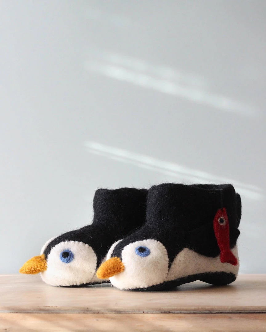 Handmade in Nepal, by artisan women who shape these slippers from wool, water and soap. The bottom of the slippers are made of suede.