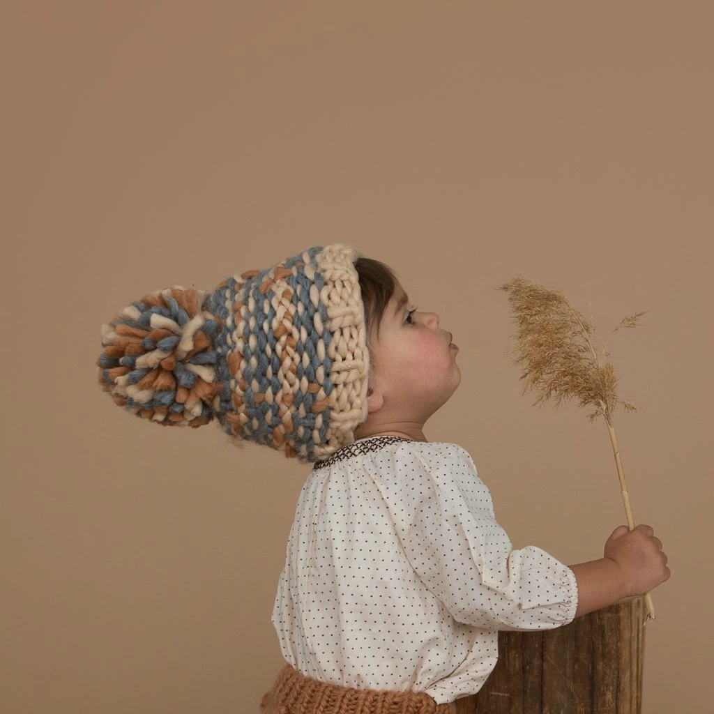 This super chunky knit hat features contrasting colors and patterns and it’s so cozy.