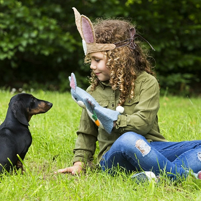 Rory Rabbit Hand Puppet is ready for an adventure, armed with a healthy carrot snack! He has an adorable pom pom tail and tactile little whiskers.