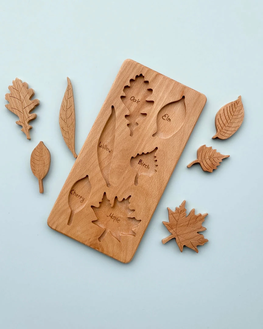 Made of solid beech wood, this puzzle features 6 leaves: oak, elm, willow, maple, birch and cherry.