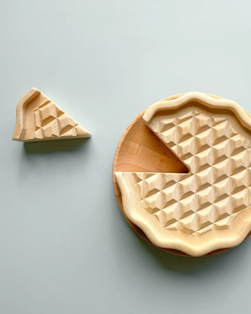 This set includes a pretend wooden pie (with a removable slice), four felt strawberries and a wooden platter.Â
