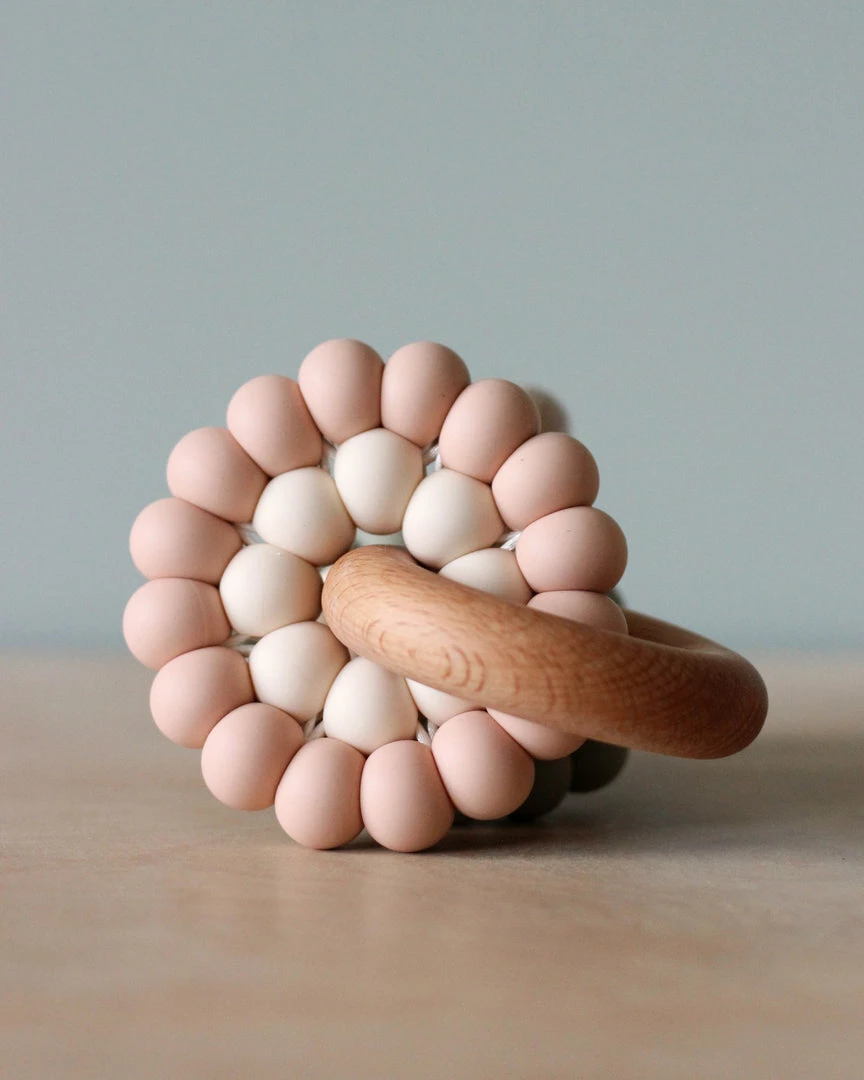 These teethers are a perfect size and shape for little hands to grasp and, combined with our buttery soft silicone beads and natural beechwood ring makes for the ideal teether to massage sore gums.Â