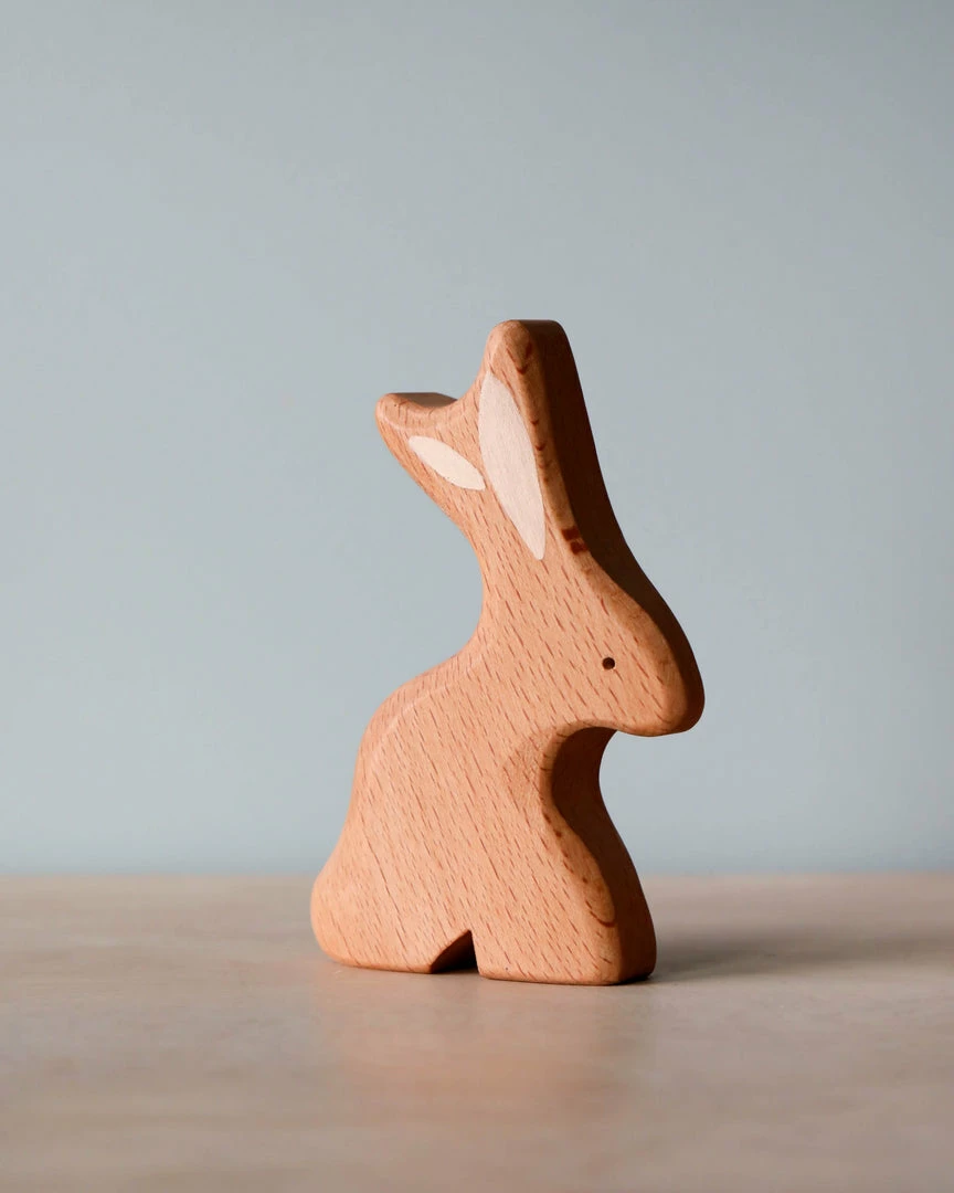 Handmade by Tevi Toys in England, this sweet bunny is made and painted with non-toxic paint and measures 4.5″ tall and 1″ thick.Â