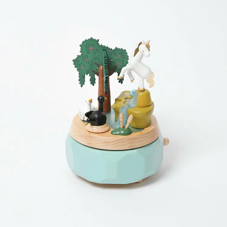 Combining nostalgia and a classic design, this hand cranked music box makes a great addition to any any room as a decoration on a shelf. The on/off toggle allows the music to start and turn off easily, while wind-up mechanism rotes the music box around.