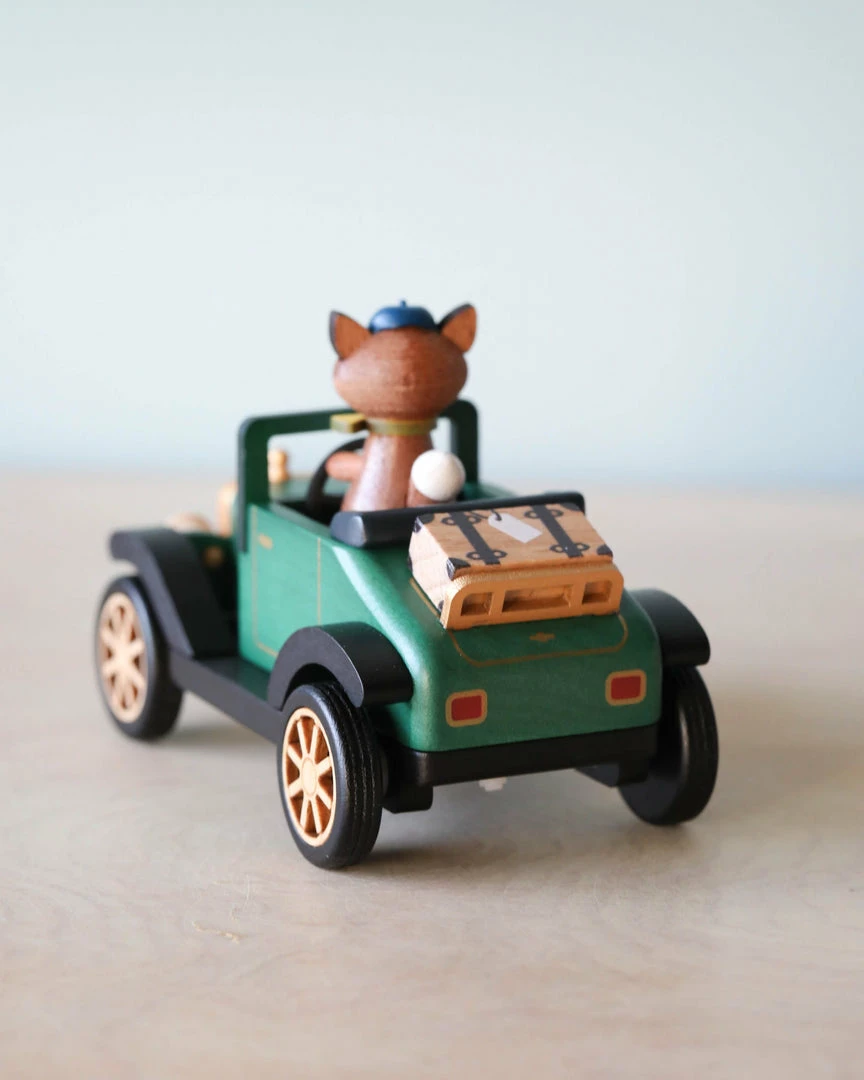 Wooderful Life Wooden Fox Driving A Car Music Box